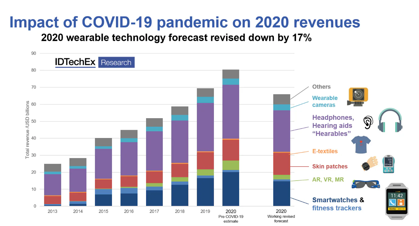 The COVID-19 pandemic continues to have a profound societal and economic impact, and many wearable products have been part of this. The most critical impact to date has been at the point-of-sale for many products, with lockdowns and social distancing measures meaning that stores are closed, doctors appointments are not taking place in person and sales of many products have been significantly impacted as a result. However, the impact has been very varied; where some products have seen as much as an 80% reduction in sales for Q2 2020 vs Q2 2019, other areas such as remote patient monitoring devices have been accelerated onto the market to assist in pandemic countermeasures.