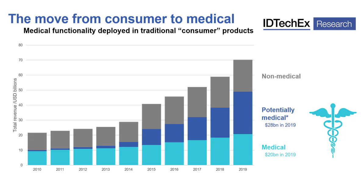 The role of a medical device for sensing is typically to represent one physiological parameter as accurately and reliably as possible. A doctor would then use an appropriate combination of medical device readings and other tests to make an assessment and determine the best course of action. However, as digital health and artificial intelligence (see IDTechEx report on this topic here) are increasingly introduced, the capabilities of medical devices are being expanded such that they can diagnose and monitor specific conditions with increasing independence from the doctor.